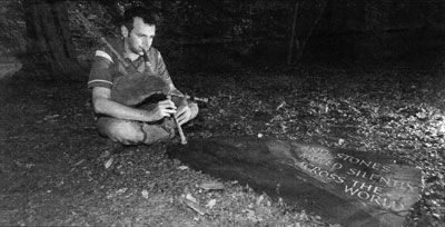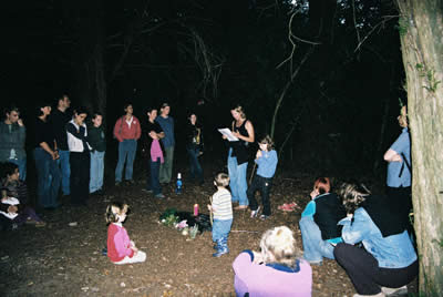We walked through the woods at twilight and I read poems at various points along the way. I had secretly arranged for a musician to play Spanish bagpipes by the stone and as we walked deeper into the woods, the strange and lilting sound of the pipes began to filter through the trees.