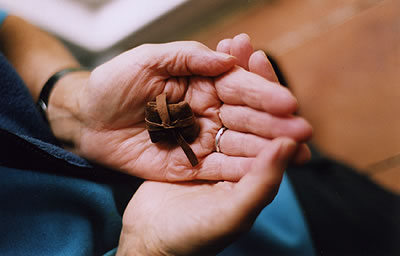 Inside this suede parcel is a piece of marble from the isle of Iona. It is now resident in the Gila wilderness, New Mexico, thanks to the kind and generous co-operation of my friend, Marion Van Ecyk McKane.